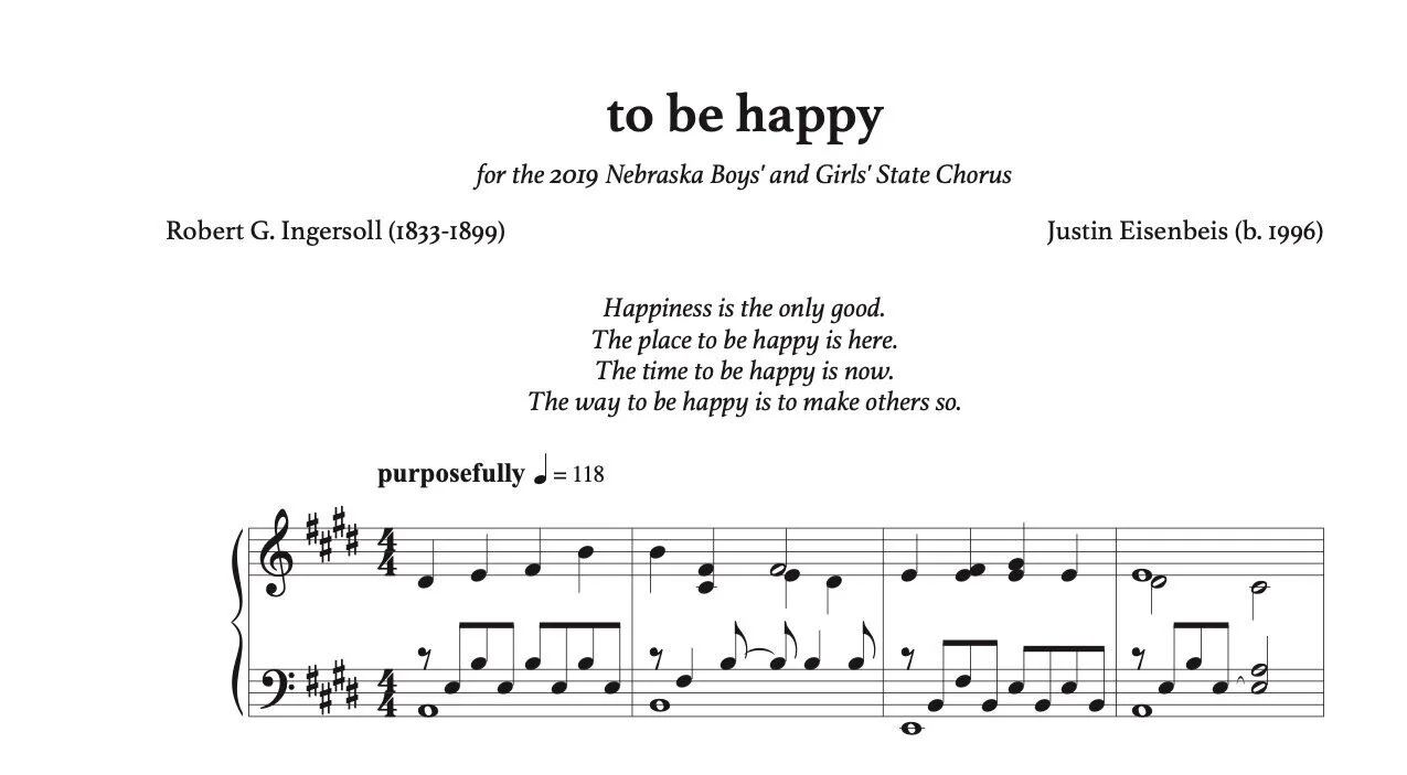 This setting of a text by Robert Ingersoll was commissioned for the 2019 Nebraska Boys and Girls State Choir.